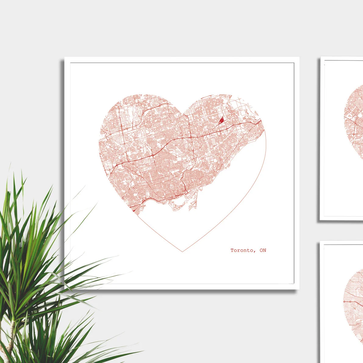 Show your love for your city with this heart shaped map of Toronto, Ontario.