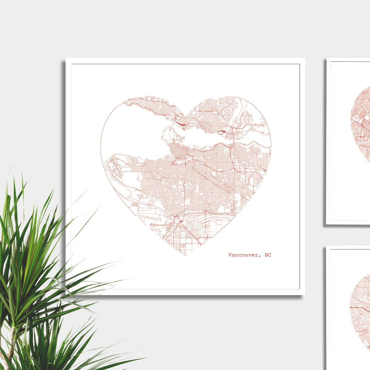 Show your love for your city with this heart shaped map of Vancouver, B.C.